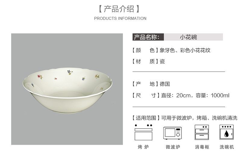 【商品名称】德国原产Seltmann Weiden陶瓷碗西餐具20cm彩色小花系列